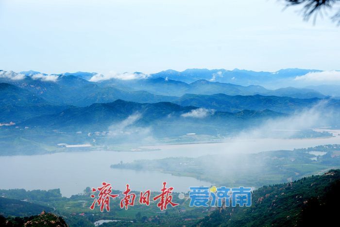 7月22日,济南雪野湖暴雨过后现云海奇观,云雾缭绕山间、漫卷湖面,山峦若隐若现,宛如仙境画卷。
