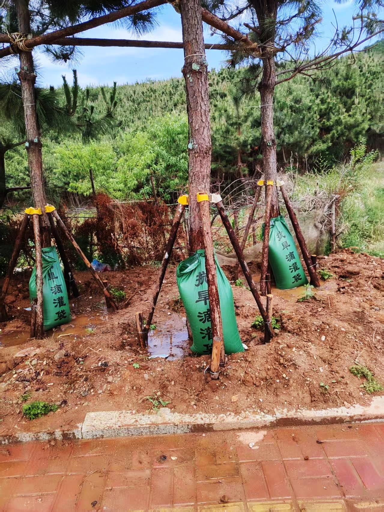 传统绿化浇水受限于水管长度、道路狭窄或人流密集等因素,部分路段易形成灌溉盲区,夏季高温时苗木更易因缺水枯萎,而滴灌袋慢滴灌技术巧妙地解决了这些难题。绿化养护人员将储水袋固定在树木根部,通过底部微型渗孔可实现持续七天以上的缓慢滴水,既能精准把水分送到植物根系,避免频繁人工浇水的交通干扰,也可以灌注药物进行病虫害防治。单袋储水量50升,每月仅需更换2-3次,相比传统喷灌节水约40%,大幅降低人力与水资源成本。此外,储水袋外还可加装防啃咬保护层,兼顾美观与实用性。
