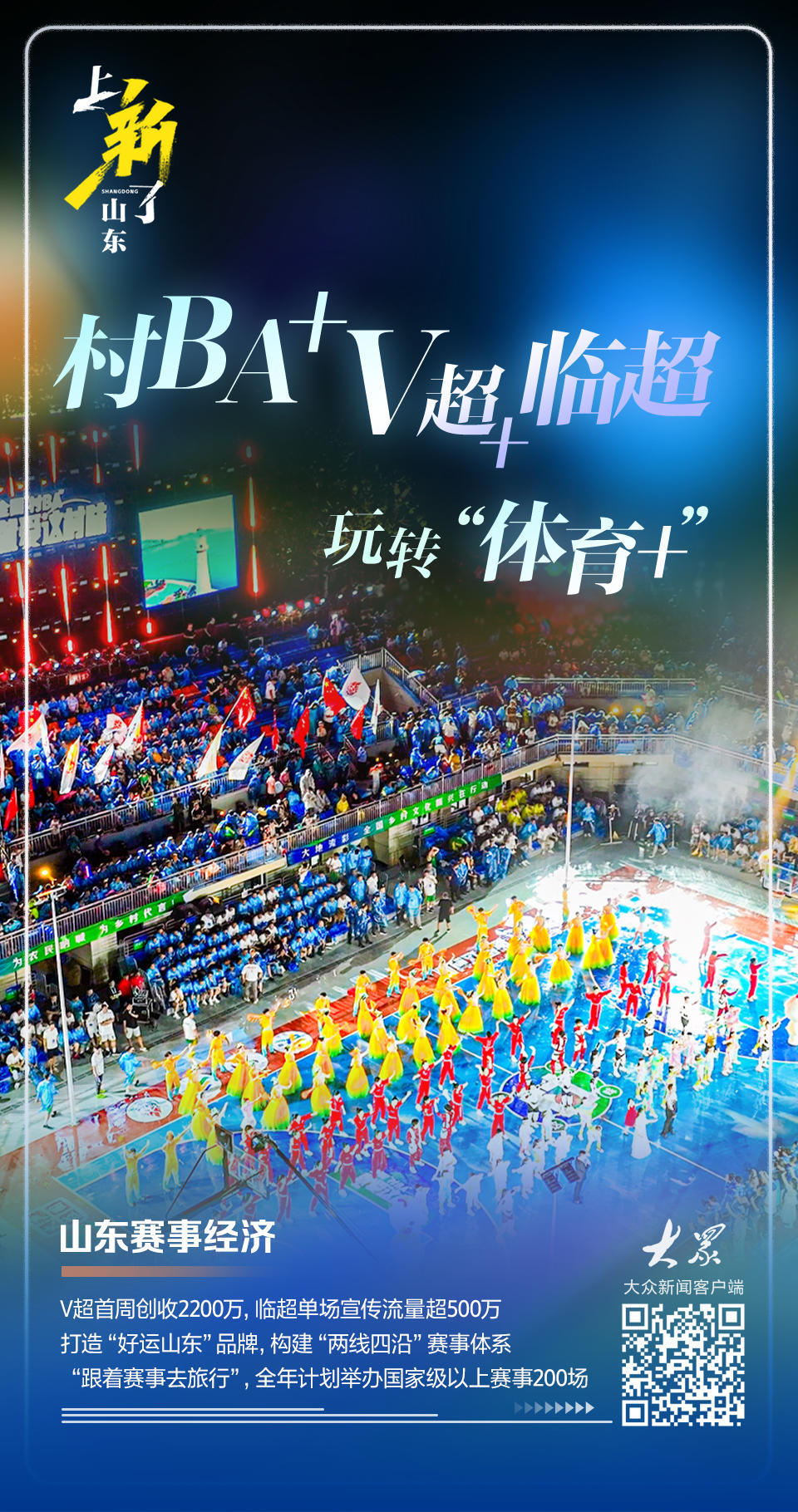 创建国家体育旅游示范基地2个、省级示范基地29个,发布体育旅游精品线路80条,整合120余家景区,推出“跟赛事游齐鲁”好运山东一卡通……除了“V超”“临超”等新起之秀,山东以赛事经济破题文旅发展,将体育旅游资源串珠成链,实现运动与文旅的“双向奔赴”。