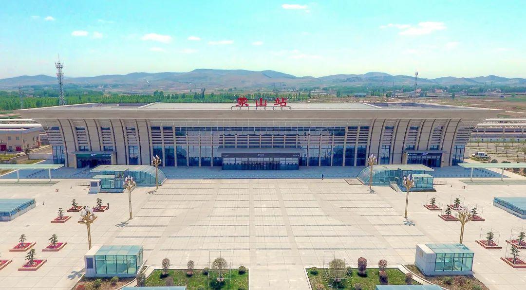 蒙山站坐落于“中国金银花之乡”——临沂市平邑县。车站设计巧妙融入金银花元素:弯曲的立面线条似待放的花苞,建筑转角如盛开的花朵,整体彰显出蓬勃向上的气质。