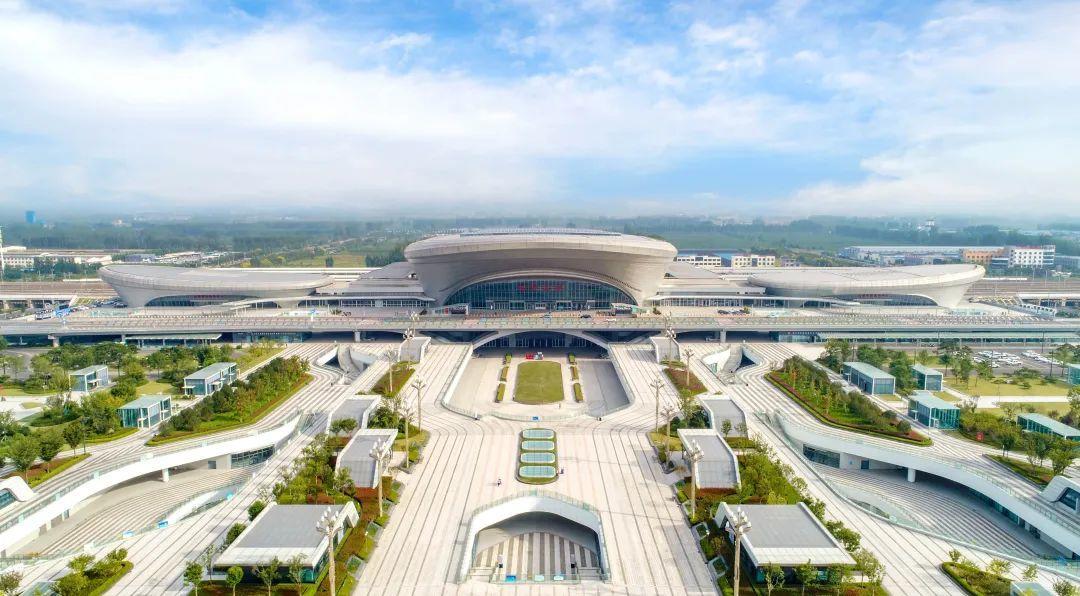 郑州东站的外形灵感来自国宝“莲鹤方壶”和“双连壶”,从空中俯瞰,宛如汉字的“中”。