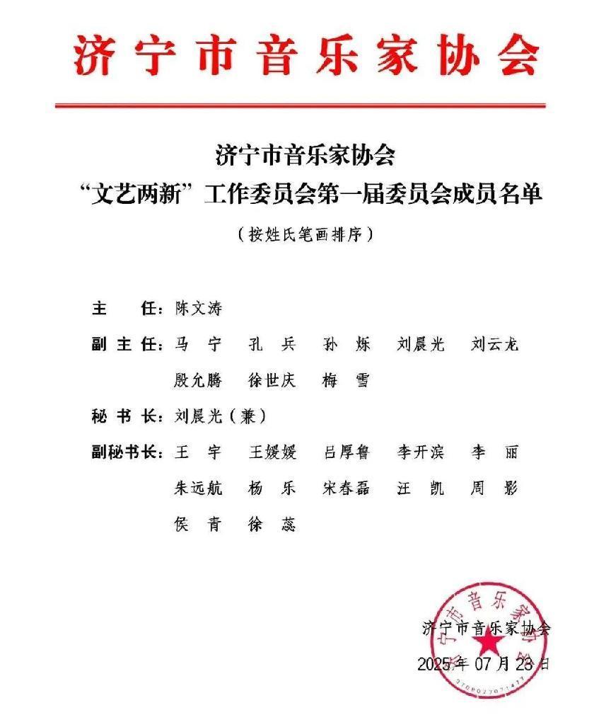 新当选的工作委员会主任陈文涛在表态发言中表示,将以高度的责任感团结全体成员,全心全意为新文艺群体服务,积极推动音乐与多领域的创新融合发展,让济宁的音乐之花绽放出更绚丽的光彩。