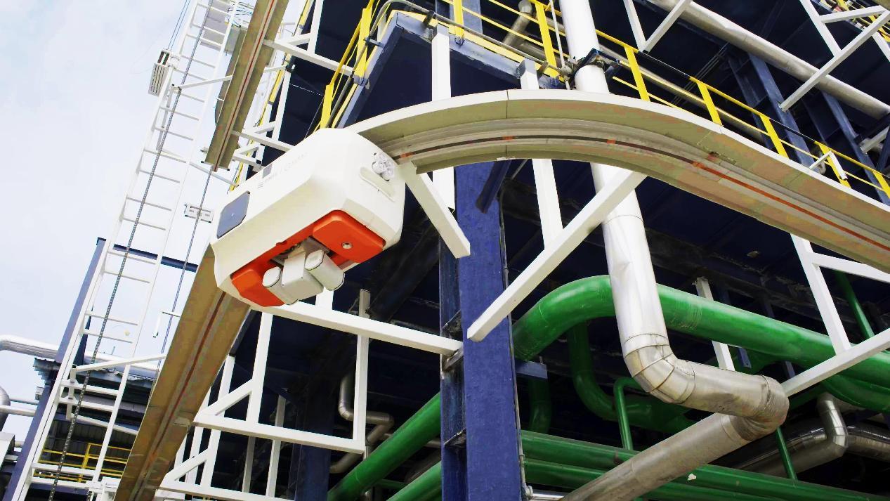 在京博石化的生产现场,智能装备正深度重塑传统作业方式。搭载5G与AI技术的挂轨智能巡检机器人,集高清视觉、声纹识别、热成像、气体检测于一体,实现了设备状态实时监控、智能预警与无人值守,将高危环境下的安全保障提升至全新高度。