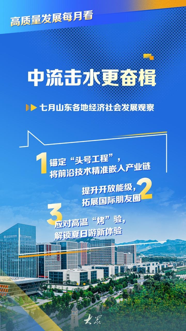 盛夏7月,热浪奔涌。工业产线上,创新脉动加速转化新质生产力;开放最前沿,资源、资本等要素汇聚交融;高温“烤”验下,做好各项保障工作……乘着上半年经济运行顺利实现“双过半”的东风,山东各地锚定目标,突出重点产业、重点区域、重点事项,把握“黄金期”,攻坚三季度。