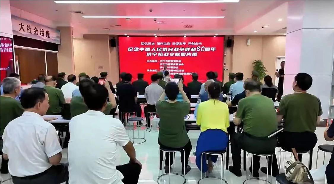 7月31日上午,由济宁市教育家协会、济宁市拥军优属协会、济宁市书画协会主办,济宁雷锋精神纪念馆、任城区金城街道社会组织共创谷承办的“纪念中国人民抗日战争胜利80周年济宁抗战文献图片展”在任城共创谷盛大开幕。