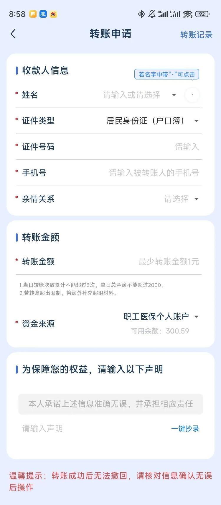 (注意:使用“医保钱包”,需要转账人和收款人的地区均开通了“医保钱包”功能,才能进行转账。)