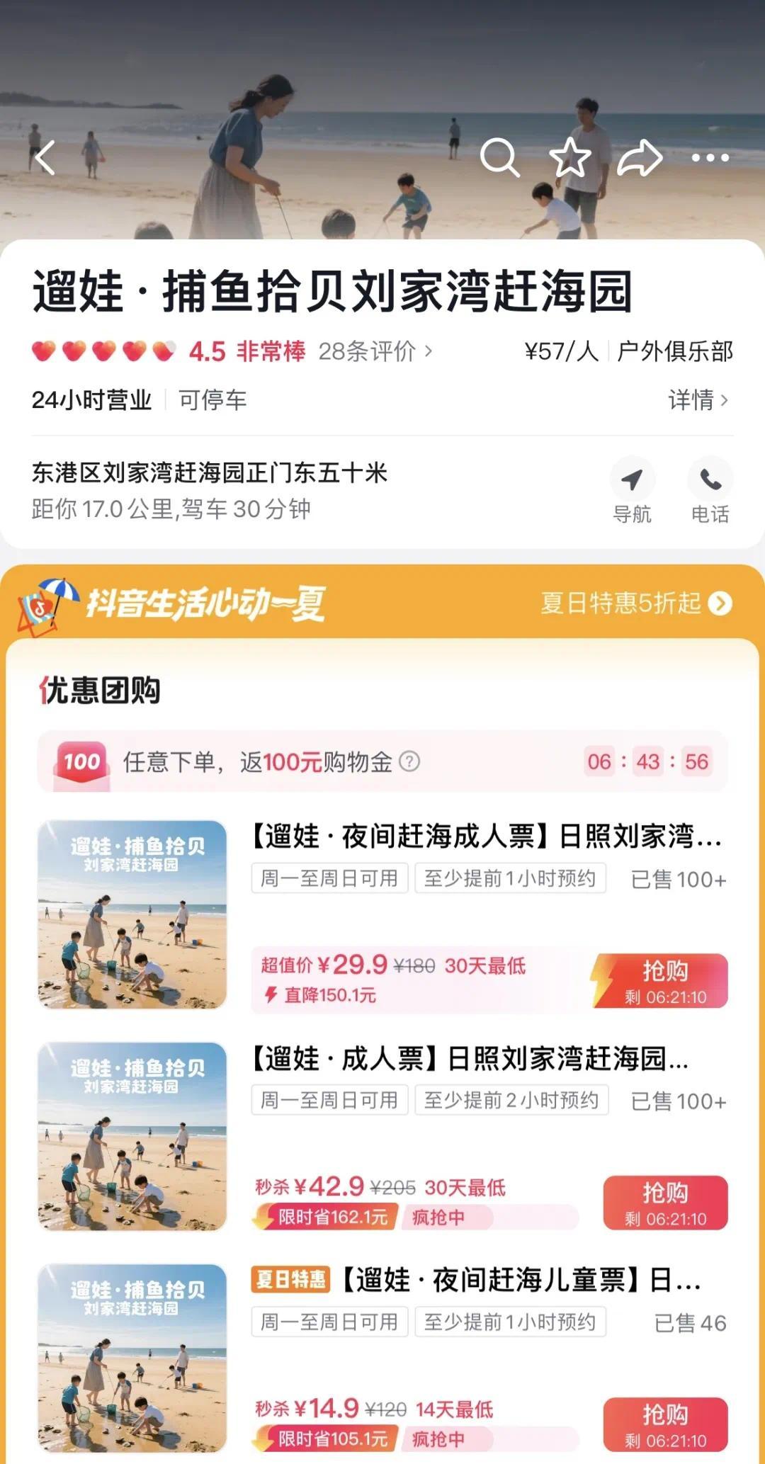 抖音搜索“遛娃·捕鱼拾贝刘家湾赶海园”