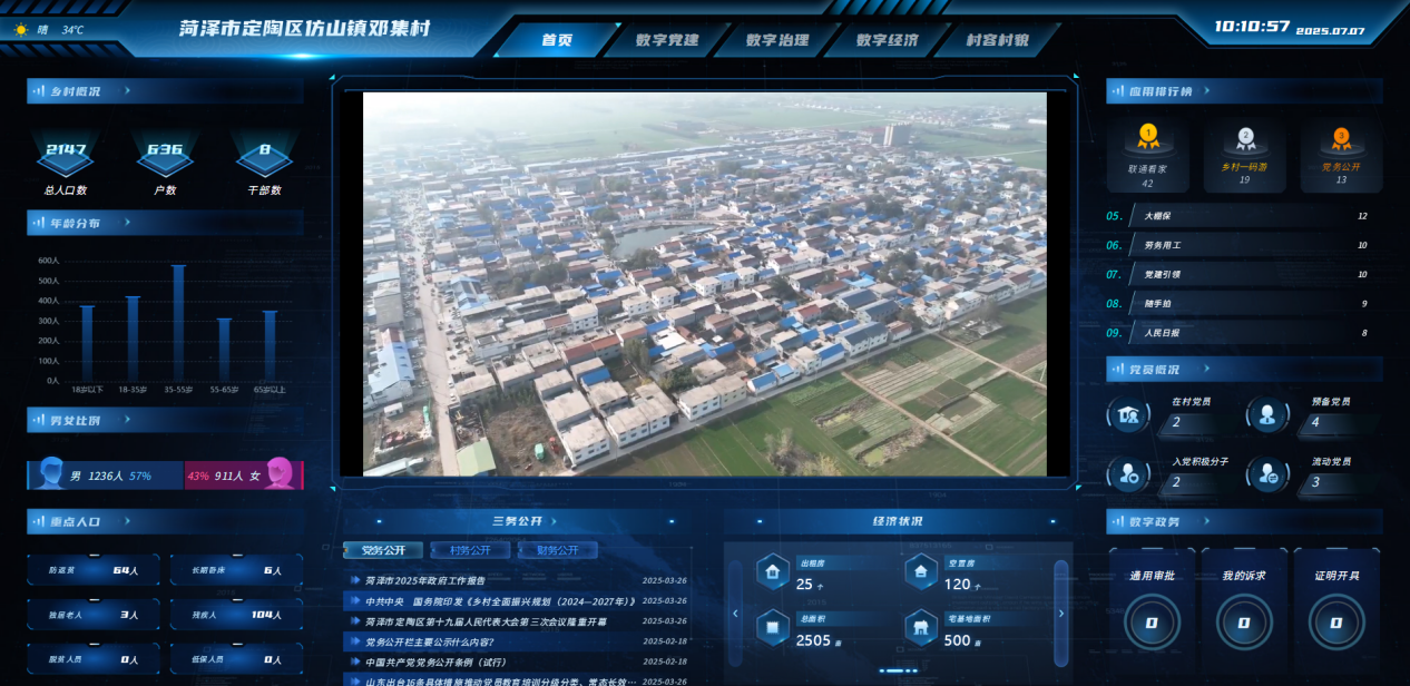 邓集村是公司47个帮扶村之一,拥有近5000人口,主要农作物为小麦、玉米等。多年来,山东联通以国家乡村振兴战略为指引,充分发挥自身在信息通信领域的深厚积累,将数字乡村平台建设作为关键支点,在省派第一书记王鹏、徐小杰的扎根推动下,一场以“党建领航、科技赋能、消费贯通”为路径的乡村变革蓬勃兴起。