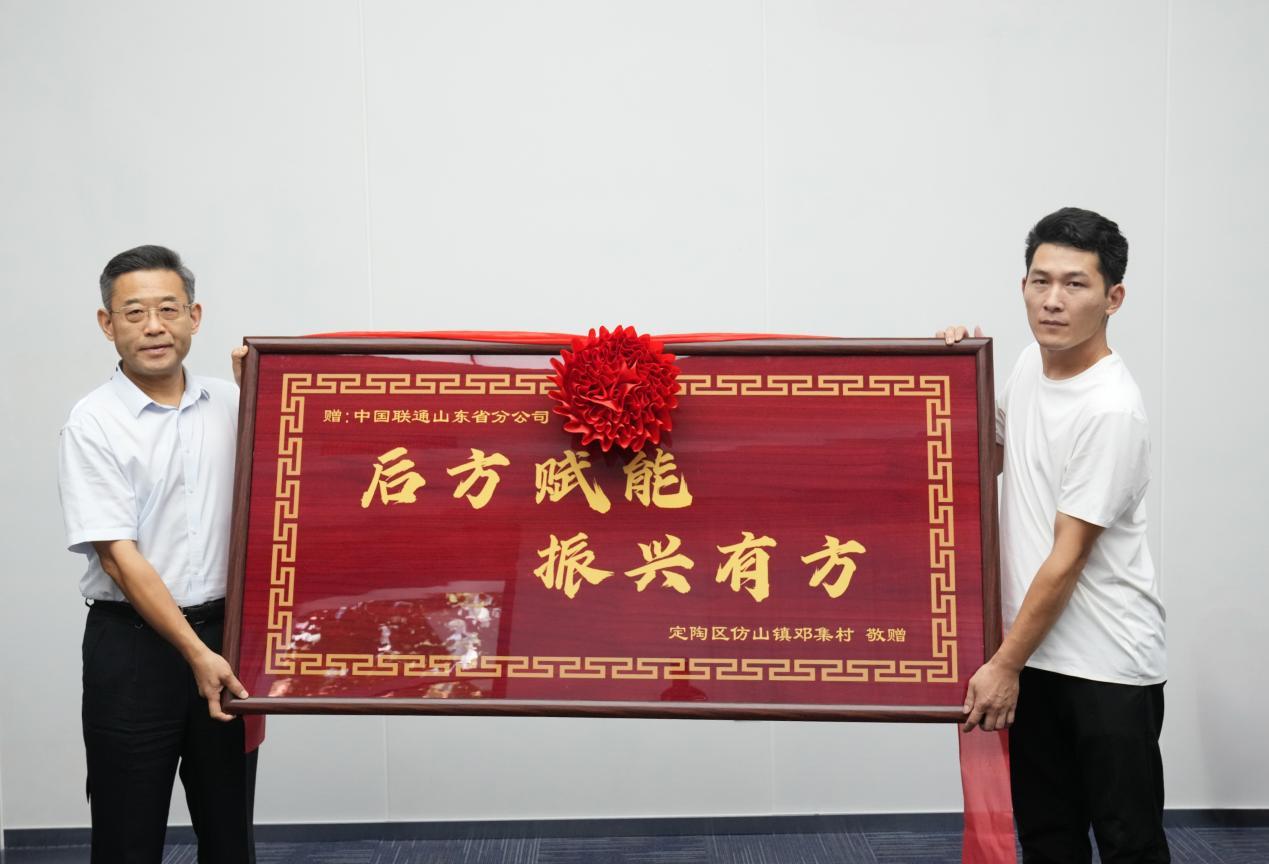 七月末的济南暑气正盛,一面镌刻着“后方赋能 振兴有方”的木质牌匾被郑重交到了山东联通党委副书记田青岭手中。