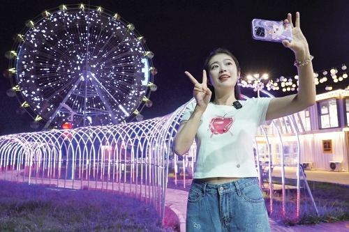 如果夜市有“天花板”,那一定是南湖·星光不夜城。左手攥着满记甜品的杨枝甘露,右手举着滋滋冒油的羊肉串,灯光天幕下驻唱歌手的歌声响起,抬头就是摩天轮的流光,就在此刻“咔嚓”一下,将夏夜定格成朋友圈的九宫格。“钢城的夜是惊喜的。”大二学生小玉和她的朋友举着手机在星光不夜城里穿梭,“这里的氛围感简直拉满,随便一拍都是大片,朋友圈素材库直接爆满,我和朋友完全拍上瘾了!”