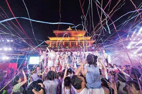 最绝的是电音泼水节——DJ、MC喊麦+水炮齐发,水花搭电子鼓点,让夏日夜晚激情又凉爽。还有机甲热舞炫酷来袭,未来科技与舞蹈的灵魂碰撞,熟悉的旋律响彻夜空。夜晚的节庆广场更是沸腾,万人泼水狂欢把气氛推向高潮,记得提前备好换洗衣物(别问我怎么知道的)。