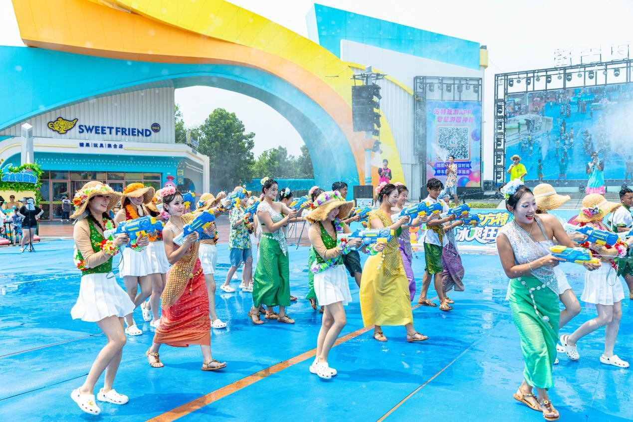 活动期间,“清凉西瓜小镇”以蒙眼吃瓜、凿冰寻宝、冰桶挑战三大消暑游戏,在炎炎夏日带来阵阵清凉欢笑;“水上飞人”与“飞天火壶”昼夜轮番上演,带来传统非遗与现代科技交融的视觉奇观;“海狮欢乐秀”萌趣海狮David献上欢乐互动,逗趣全场;还有“佤族歌舞”“花式篮球”等夏日限定演艺惊喜不断,为夏日游园之旅增添无限乐趣。