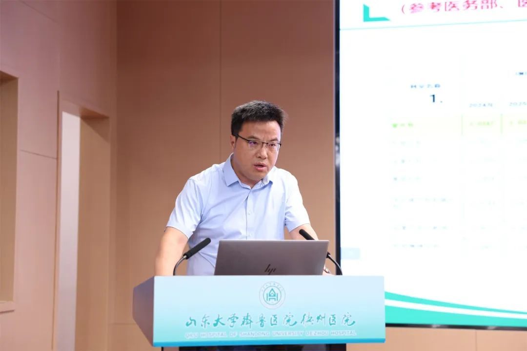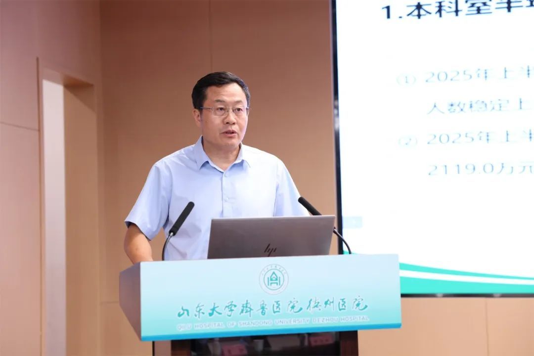 8月6日,齐鲁医院德州医院召开2025年半年工作总结推进会,全面总结2025年上半年工作成果,科学部署下半年重点任务。山东大学齐鲁医院医务处处长任洪波,骨科主任程雷,齐鲁医院德州医院全体领导班子成员出席会议。医院各党总支书记、党支部书记,各职能、临床、医技科室主任、副主任,科护士长参加会议。