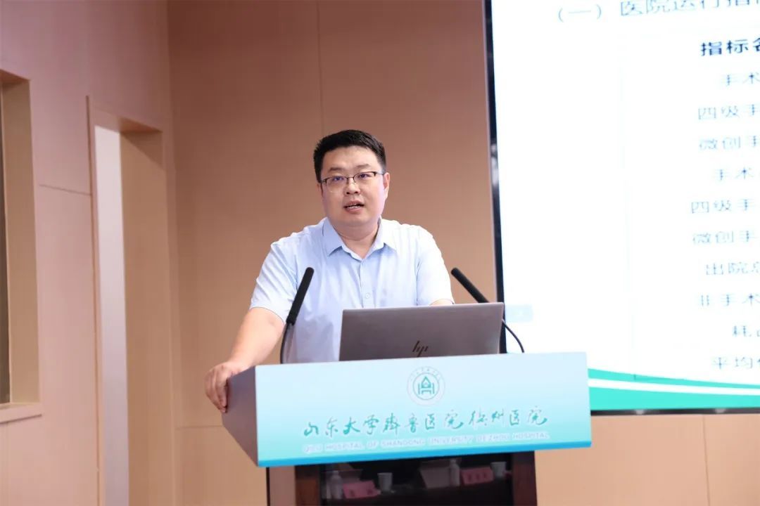 医院党委书记王振东指出,今年以来,在市委、市政府和山东大学齐鲁医院的大力支持下,医院紧扣国家区域医疗中心建设主线,推动各项工作取得显著成效,医院发展呈现出平台更强、能力更优、效益更实、作风更硬的良好态势。王振东围绕三项突出困难、四个核心重点深入分析了当前发展形势,并安排医德医风专项整治工作,提出“五个强化”,明确将以作风建设为核心保障,持续推动医院高质量发展任务落实落地。