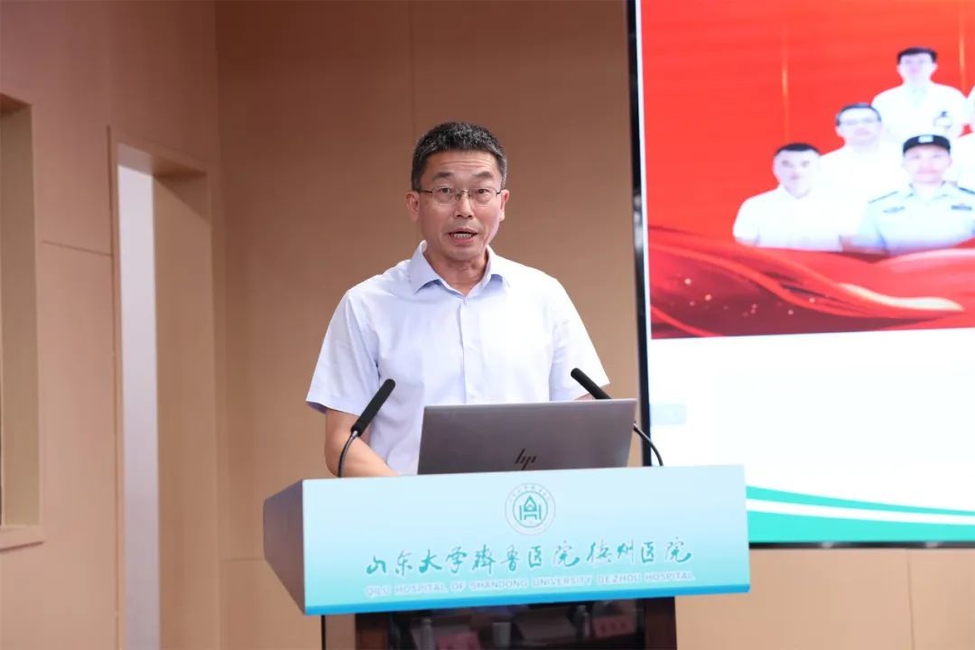 会上,医院职能部门、临床医技科室代表就2025年上半年工作情况、存在问题及下一步工作计划做汇报。山东大学齐鲁医院医务处处长任洪波,骨科主任程雷对科室汇报进行了点评,充分肯定了医院在国家区域医疗中心建设、医疗质量与服务能力提升方面的进展,同时鼓励医院各学科继续对标高水平医院,加快补短板、强能力、拓区域。德州医院院领导王太勇、孙念政、王英分别结合汇报内容作出点评,指出成绩、分析短板,并就下步工作提出有针对性的建议;费剑春领学《医务人员职业道德准则(2025年版)》,强调新时期加强医德医风建设的必要性,要求全体医务人员认真学习、坚守底线,树立风清气正的行业风貌。