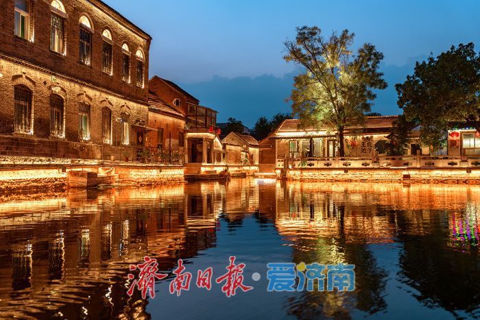 8月12日晚,济南王府池子化身夜色中的明珠,为泉城点亮诗意画卷。夜幕垂落,雕花木窗透出柔光,金黄色亮化灯带将古朴的建筑照亮,在如镜的水面上形成漂亮的倒影。迷人的夜景让这里成为市民夜游泉城的好去处。(济南日报·爱济南记者:梁大磊)