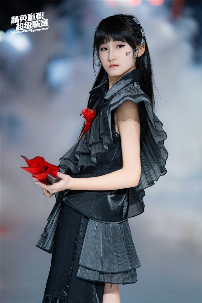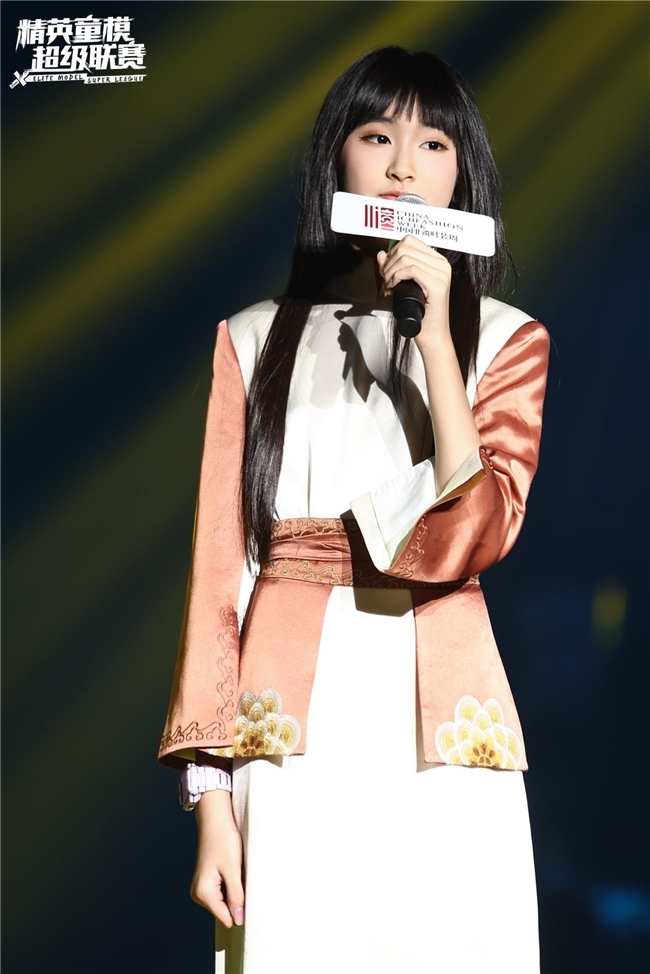 作为本届赛事的非遗宣传大使,黄姚婉尔在中国非遗时装周-儿童专场上率先登场,身着非遗服饰;以沉稳大气的台步演绎传统与时尚的碰撞。她的灵动展示焕发新生,赢得现场观众阵阵掌声。