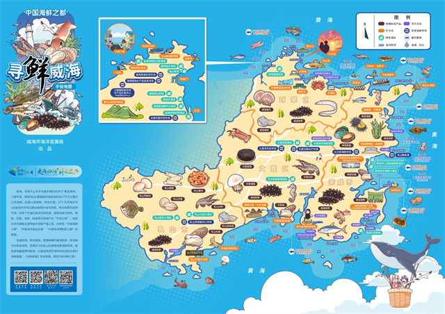 “千里海岸线,一幅山水画。山海滋养的不仅是风光,也孕育了威海海鲜的独特风味。作为‘中国海鲜之都’,威海连续30余年蝉联全国地级市海鲜产量之首。”威海市海洋发展局相关负责人说道,“目前正值暑期旅游旺季,为帮助游客深度体验威海风情,我们聚焦游客关心的海鲜美食、休闲垂钓、特色伴手礼购买等问题,通过多轮甄别,将最好的地方特色产品和服务放入这张手绘地图中,为游客提供一站式出行指南,让每一位手持地图的游客都能感受到威海这座城市扑面而来的诚意与温度。”