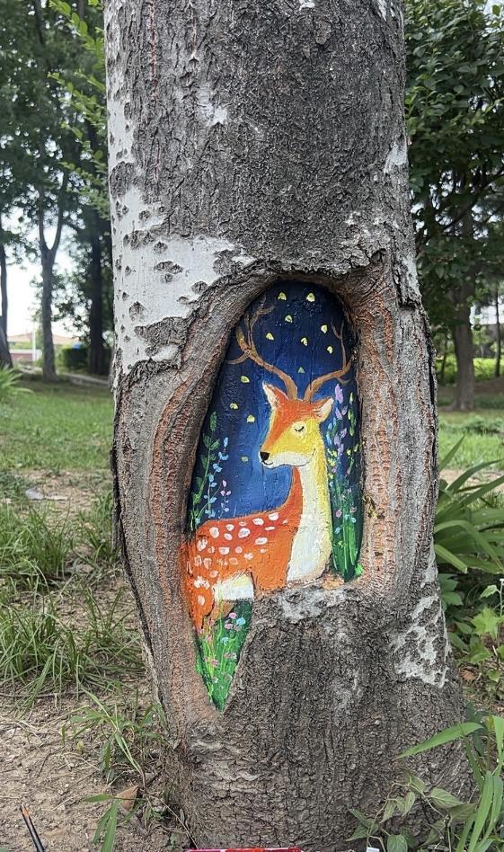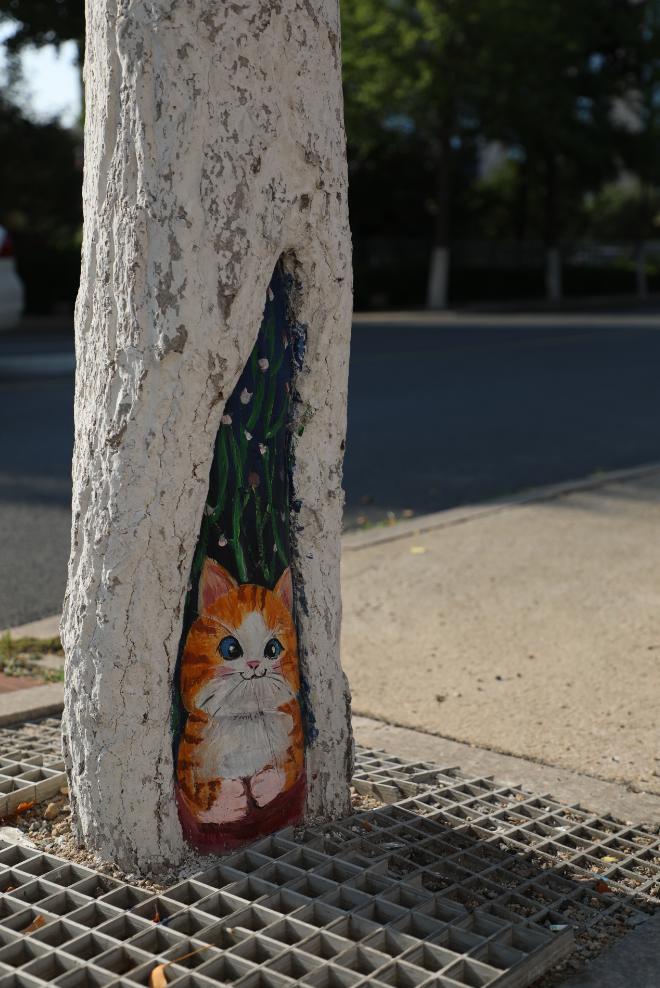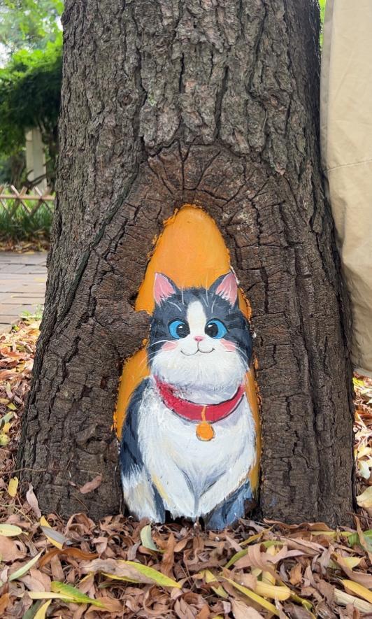 于是,一幕幕生动的画面出现在市民的视野中:抱着松果的小松鼠、喝着奶茶的大熊猫……每一幅作品都既保留了树木的自然形态,又赋予了它们新的生命与故事。这不仅是对城市绿化的一次创新尝试,更是对市民生活品质的一次提升,将自然之美与艺术之韵完美融合,让市民在日常的行走中也能感受到艺术的气息,享受到更加和谐美好的城市环境。