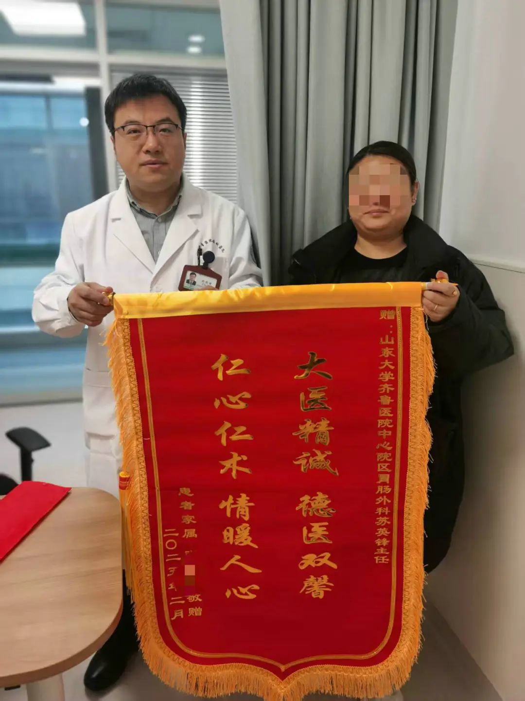 苏英锋带领团队与麻醉手术科、妇科等多科室联合会诊,反复研究后,最终制定了 “腹腔镜下直肠癌根治术+乙状结肠造瘘术” 的综合治疗方案。2月20日,手术正式进行。术中,他凭借精湛的腔镜技术,在保护周围脏器的同时精准切除肿瘤,细致修补瘘口,历时3小时顺利完成手术。术后经过精心护理,老人下腹部疼痛消失,阴道渗便症状彻底缓解,十天后便能下床活动,复查时各项指标均显示正常,家属悬着的心终于落了地。