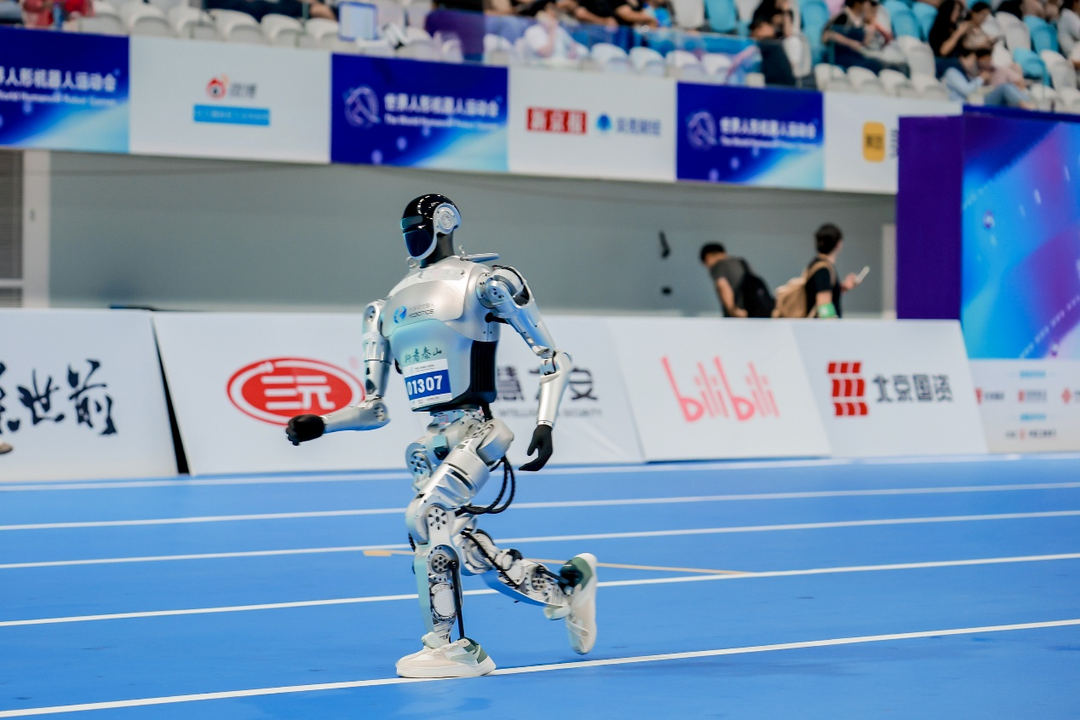 2025世界人形机器人运动会上,山东造“行者泰山”意外“断臂”后仍坚持完赛