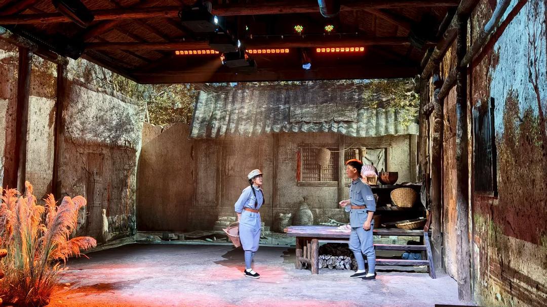 在沂南,影视是入口,山水是载体,红色文化是底色。作为沂蒙精神的重要发源地,沂南县高度重视红色资源的保护和利用,制订沂南县革命文物保护利用规划(2022-2035)》和红色旅游融合方案,以深厚的红色资源为根基,以“影视+文旅”深度融合为战略支点,聚焦“红嫂事迹、红色演艺、影视体验”三大亮点,构建全域联动的红色文旅融合发展格局。为了消除游客的审美疲劳,沂南县不断创新文旅演绎方式,打造“沉浸小院+山村剧场+科技赋能”立体模式,创作出30余个红色小戏小剧剧本,推出了《识字班》等11个沉浸式小院演出剧目,打造东高庄红色文化实景演艺体验《东高庄:一个山村的中国叙事》,与影视结合推出《重走支前路》行进式表演剧目, 可视化呈现、互动化传播与沉浸式体验实现多维融合,红色文化实现从“静态陈列”到“活态展演”的转变。截至目前,沂南县各类红色演出已超15000场,接待观众200余万人次,实现游客数量增长300%,红色基因、革命文化在沂南有了多层次、立体化表达。