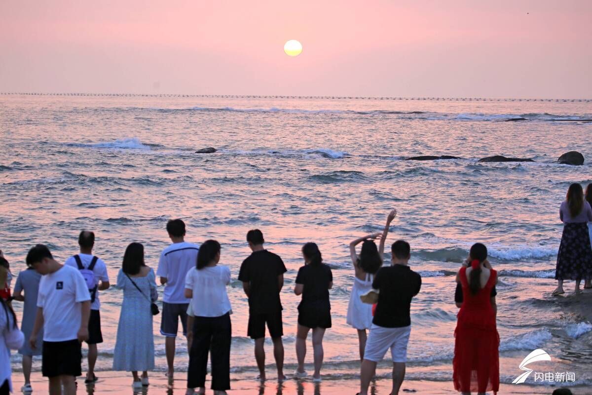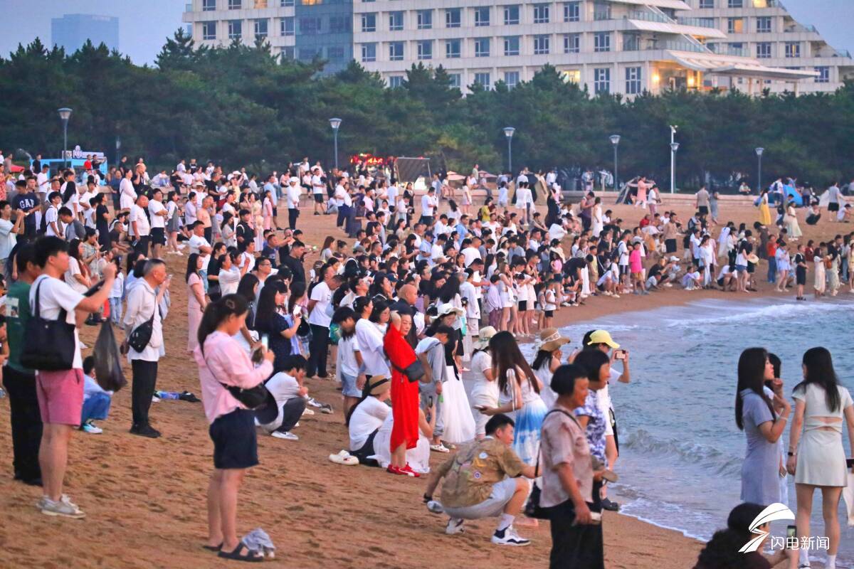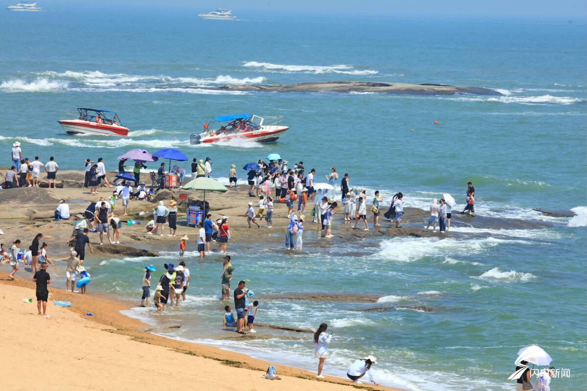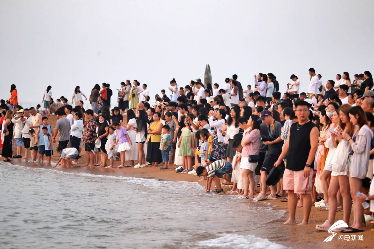 绵延的金沙滩上人头攒动,欢笑声乘着海风,与浪涛的节拍共振。