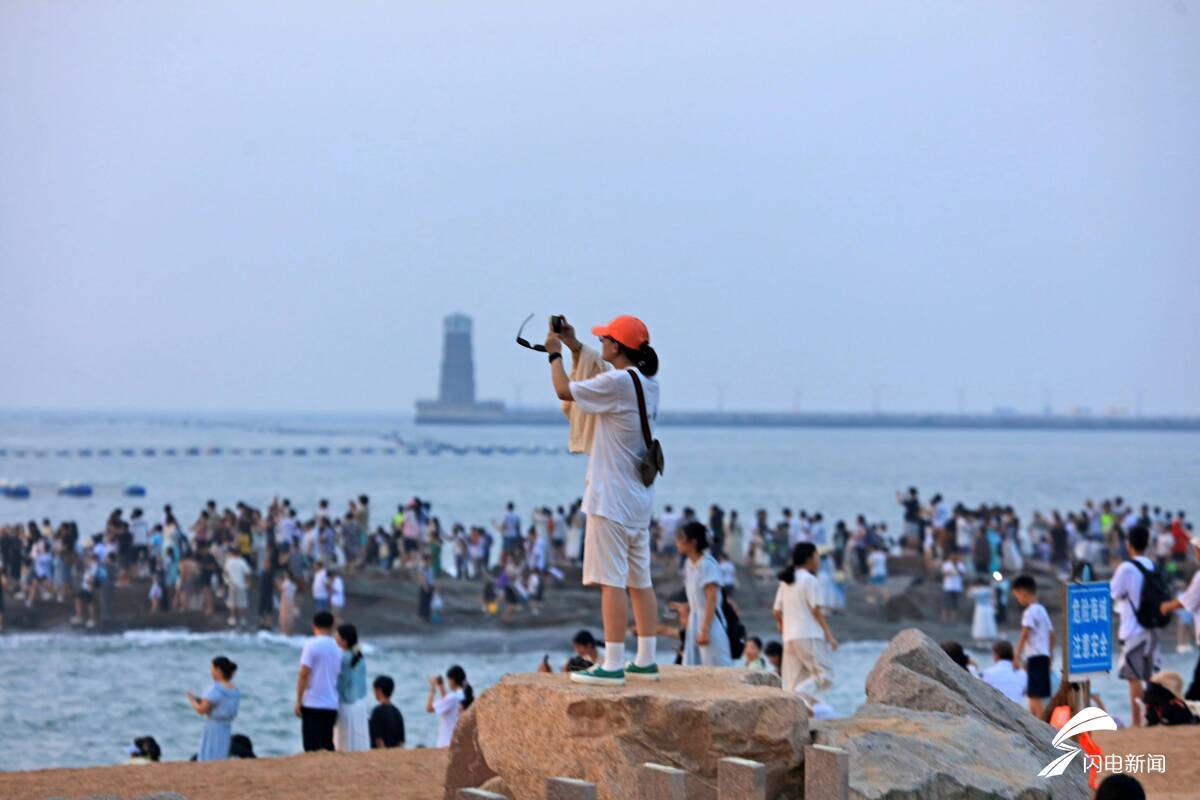 齐鲁网·闪电新闻8月20日讯 暑期接近尾声,但是日照海边的热度依旧不减。8月19日,日照灯塔风景区内人潮涌动,大海与人群共同勾勒出一幅活力满满的假日图景。