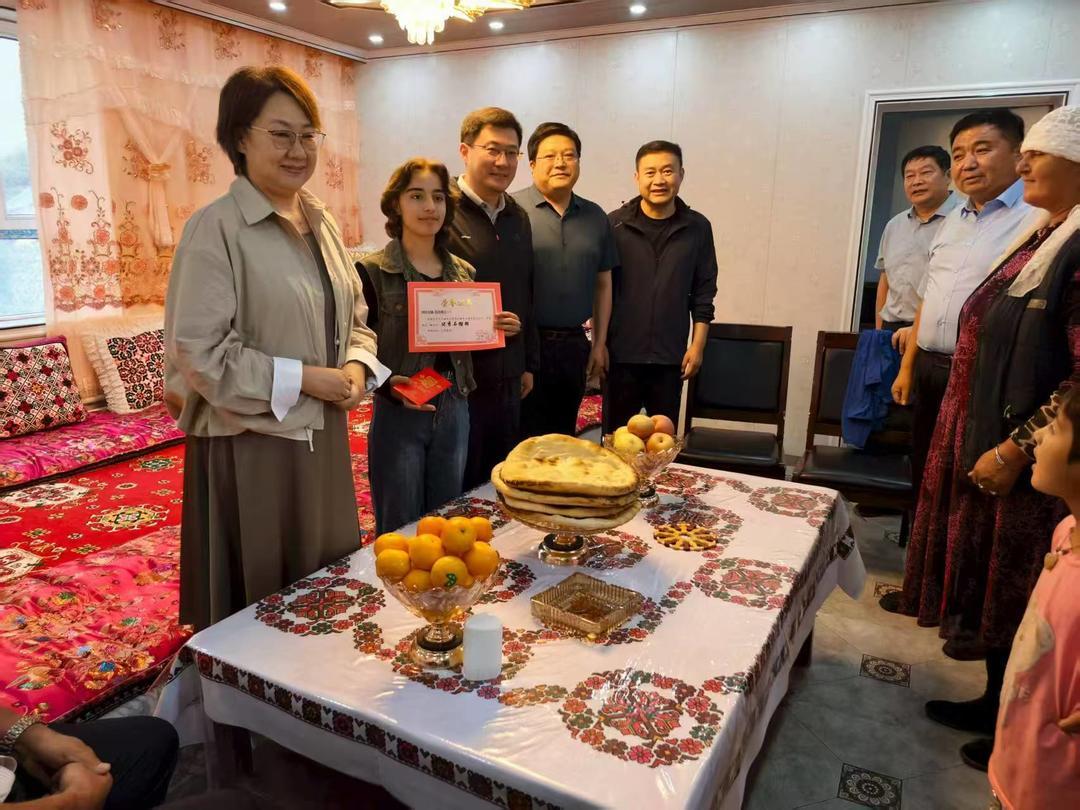 今年暑假,枣庄理工学校党委书记张飞龙带队远赴新疆喀什,再次开展“跟踪培养、万里家访”活动。在阿比古丽、阿扎提姑力姐妹家,张飞龙为姐妹俩颁发“优秀石榴籽”证书及慰问金。