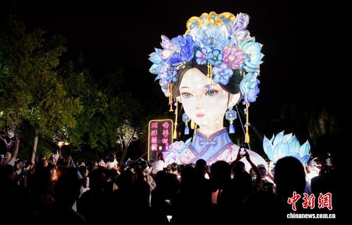 8月23日晚,山东省济南市大明湖新“湖畔雨荷”景观正式亮灯,吸引不少游客和市民驻足观望。据了解,新“湖畔雨荷”景观新增AI智能语音交互系统和香氛系统,游客在感受荷香的同时与“湖畔雨荷”对话,体验智能互动。图为游客为即将熄灯的老版“湖畔雨荷”花灯送别。中新社记者 张勇 摄