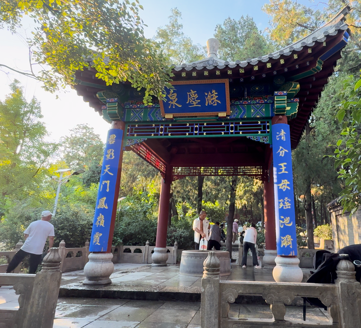 不一会儿,泉边又聚拢了几位居民,有推着小推车来打水的阿姨,有帮家里老人拎桶的年轻人,大家偶尔闲聊几句家常,清脆的泉水声与欢声笑语交织在一起。涤尘泉的水,不仅滋养着泰山的草木,更滋养着泰安百姓的生活,这份烟火气,恰是泰山与百姓生活紧密相连的见证。