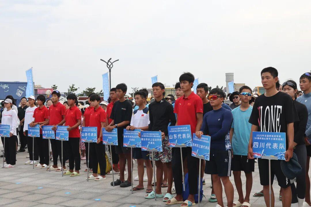 8月28日,2025年全国帆板冠军赛开幕式在烟台市芝罘区幸福湾活力海岸举行。