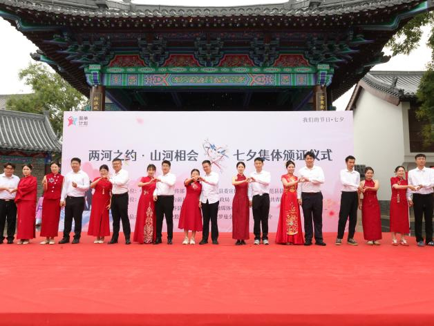 8月27日,茌平区举办“携手相濡以沫 幸福岁月长留”长者七夕庆典活动,邀请了“社区大学”的11对金婚、银婚夫妇共同参与,在传统节日的氛围中重温婚礼甜蜜,传递家庭和睦、夫妻恩爱的正能量。阳谷县在狮子楼景区举办“两河之约·山河相会”七夕集体颁证仪式,9对跨越鲁豫两省结缘的新人在传统佳节缔结婚约,携手开启幸福生活新篇章。