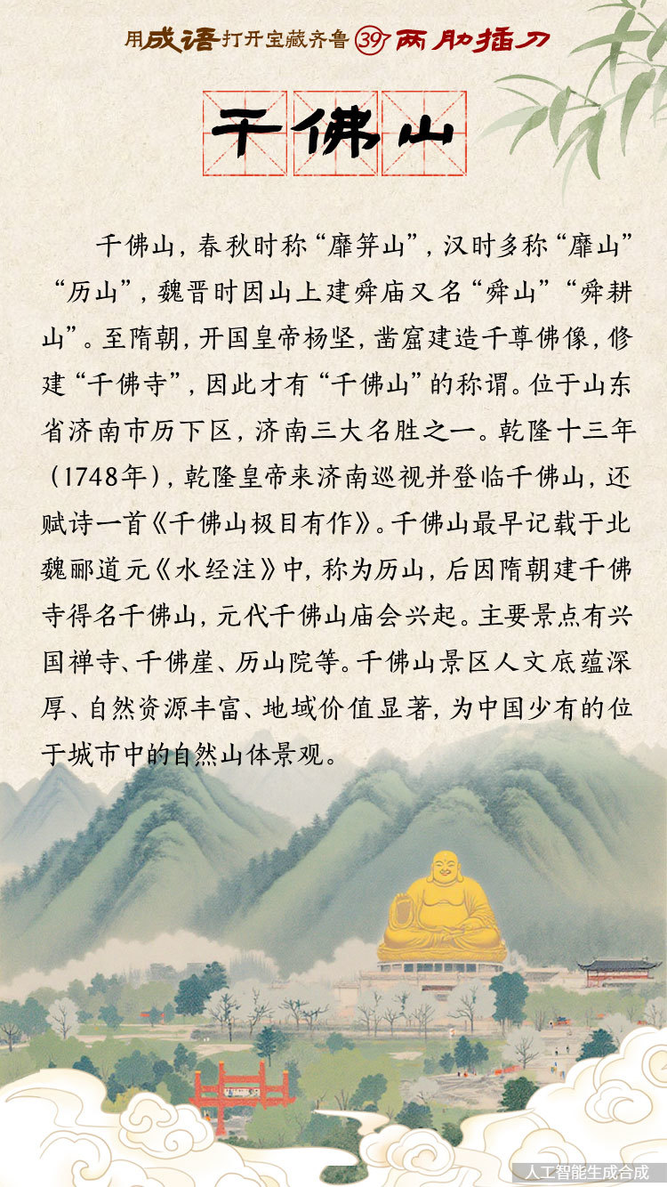 大众网·海报新闻推出《用成语打开宝藏齐鲁》栏目,采用AIGC技术生成妙趣图文,带你穿越千年,探寻宝藏齐鲁的名人轶事、历史典故、地域美景以及传统文化。