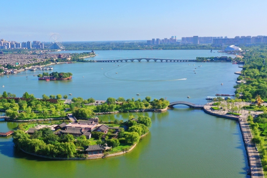 东昌湖碧波荡漾、景美如画,吸引了众多市民、游客泛舟湖上,乐享水城秋日好时光。(来源:聊城新闻网 作者:许金松)