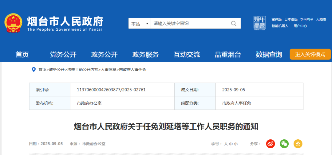 烟台市人民政府网站