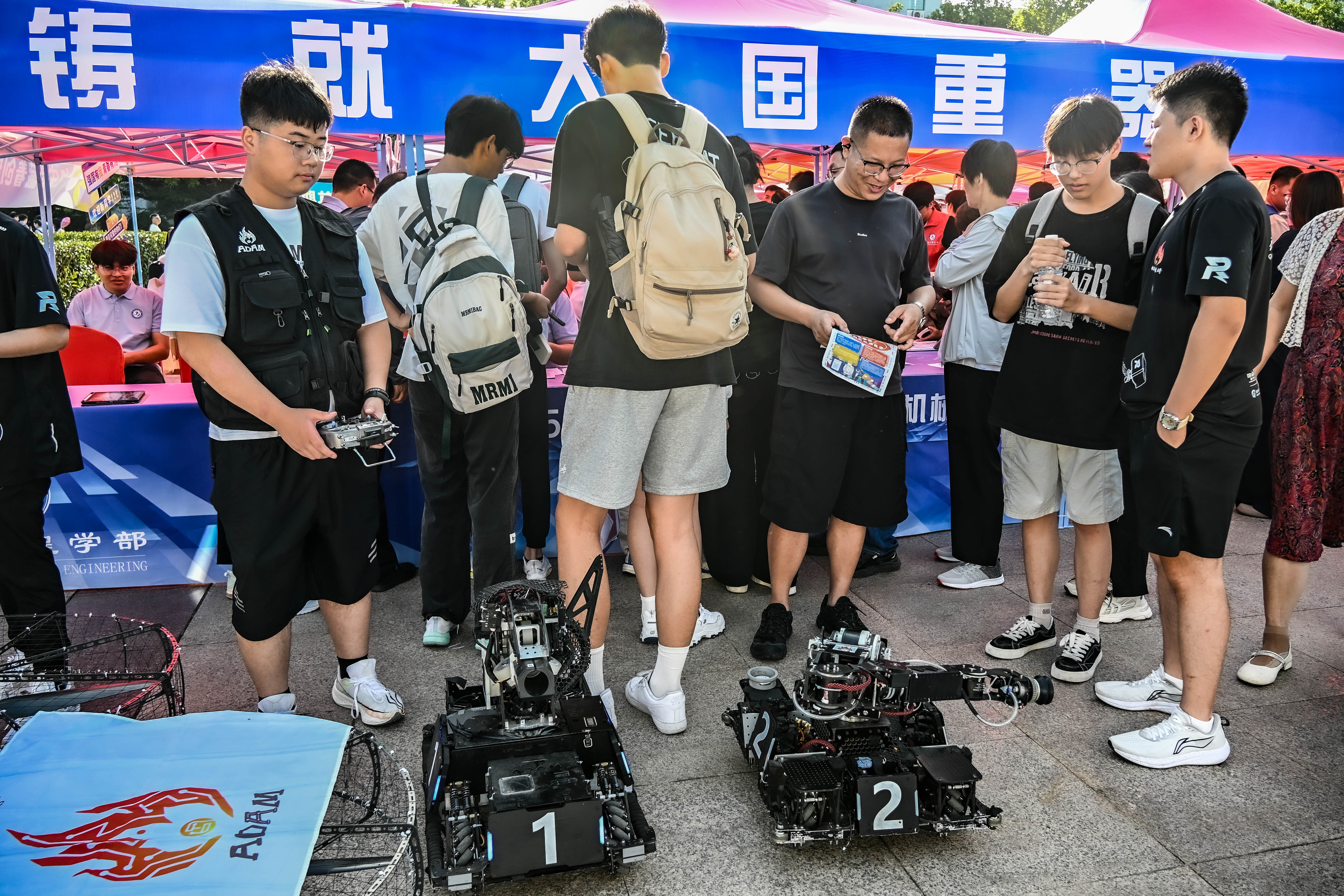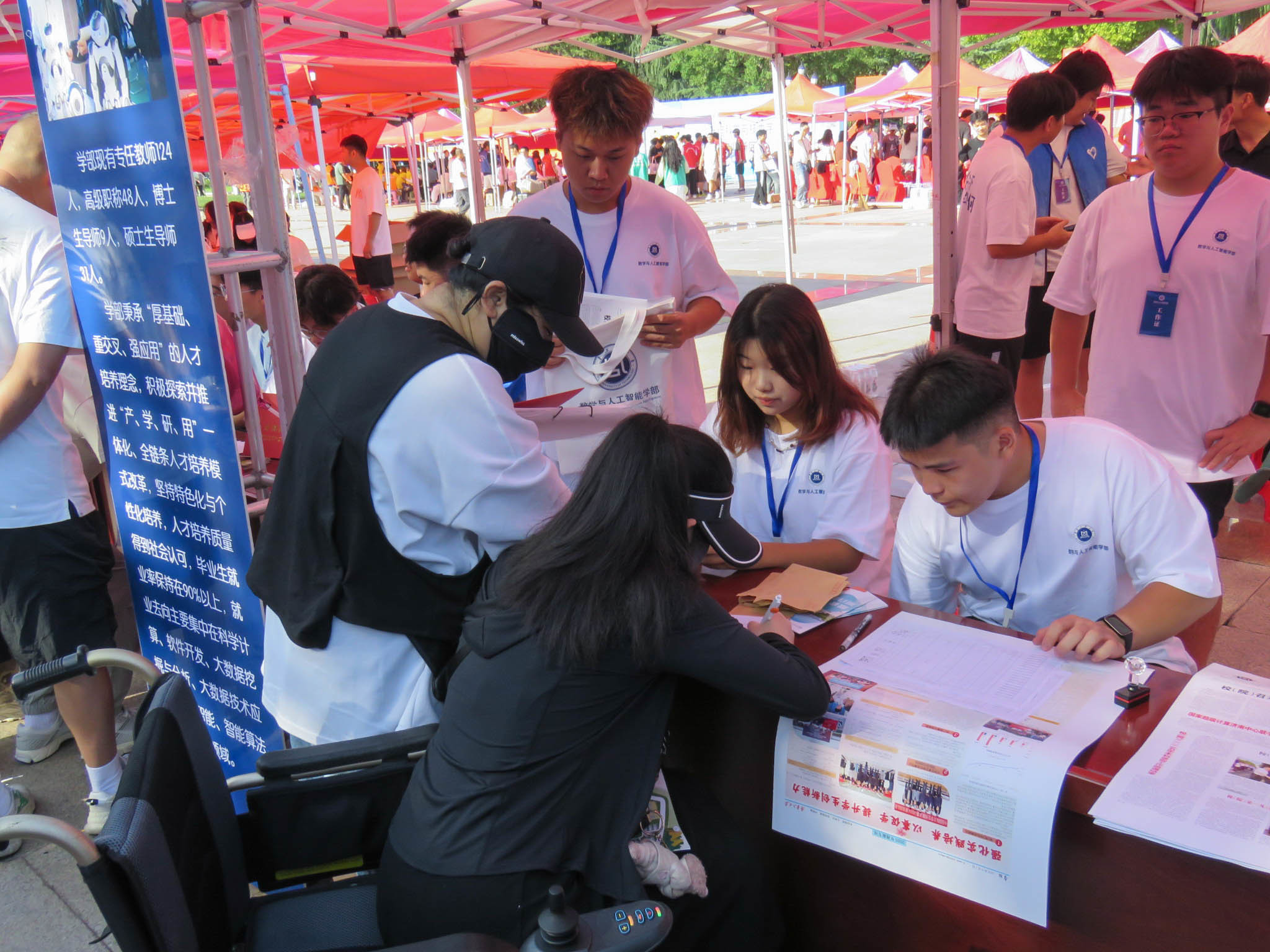 以“梦”为马,让青春逐梦远航。机械学部、控制学部、人工智能学部通过设置特色机器人展示区、智能科技互动签到区、AI未来体验区等,展出智能车、机器人等学生科创作品和机器狗、机器人等AI科技成果,让新生在互动体验中感受智能科技的独特魅力。海洋学部、食品学部通过展示代表性科研成果——海洋浮标模型,让新生们品尝由学部自制的新鲜饼干、酸奶等食品,充分激发新生们的学习热情和专业认同感。环境学部、经管学部、外国语学院通过画笑脸领植物盲盒、趣味刮刮乐、黄河盲盒抓捕计划等趣味活动,让新生们在轻松愉悦的氛围中学习、感悟、理解校园文化,在欢欣鼓舞中迎接充实美好的大学时光。