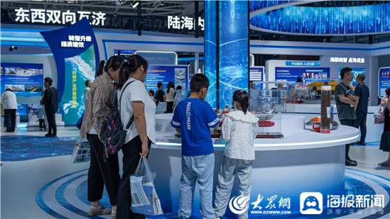 值得一提的是,本次展览不仅是对山东海洋发展成就的回顾,更着眼于未来,清晰展示了山东培育海洋新质生产力的布局。“琅琊”“问海”等海洋人工智能大模型、海洋元宇宙、深海高端装备、大型海上风电及光伏基地模型等,清晰勾勒出山东正在培育的海洋新质生产力发展蓝图。如今,山东正以科技创新为引领,从传统的“耕海牧渔”迈向智慧的“经略深蓝”,奋力谱写高质量发展的“蓝色篇章”。