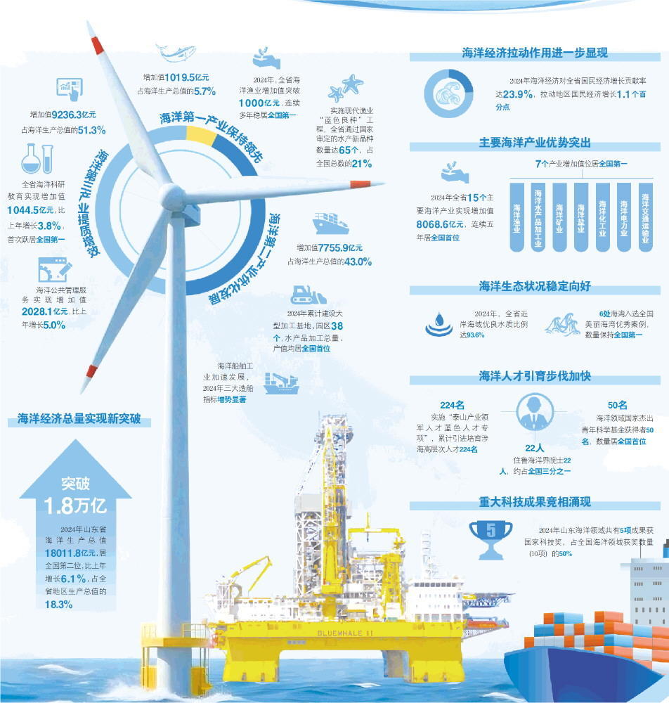 海洋,是山东发展的最大动能、最大优势和最大潜力所在。山东把海洋作为高质量发展战略要地,坚持陆海统筹,深入实施海洋强省建设“十大行动”。孕育了万亿级产值的辽阔海疆,正成为催生发展增量、拓展增长空间的新引擎。