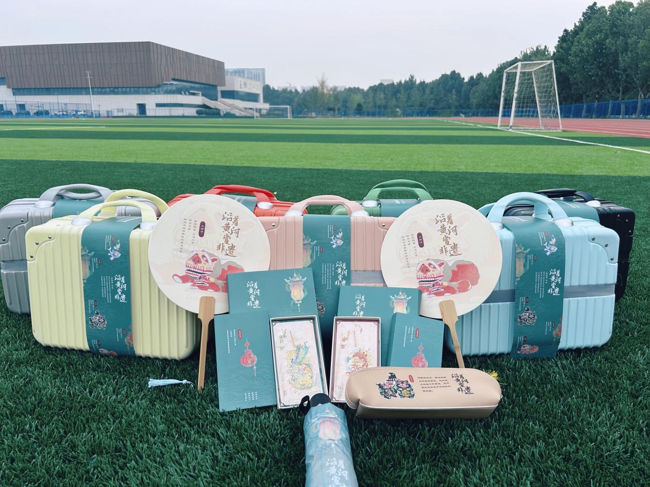 文化育人,暖心励行,彰显内涵“深”除了高效便捷的服务,校(院)为通过绿色通道入学的学生准备了以“黄河非遗”为主题的暖心礼包。礼包有行李箱、雨伞、扇子、书签、笔袋、书籍等实用的学习生活用品,且融入了承载着黄河地区悠久历史的非物质文化遗产元素。这份独特的礼物,旨在将自强不息的黄河精神传递给每一位学子,鼓励他们在未来的大学生活中,无论遇到任何困难,都能从中汲取精神力量,砥砺前行,实现从“受助”到“自强”再到“助人”的成长蜕变。