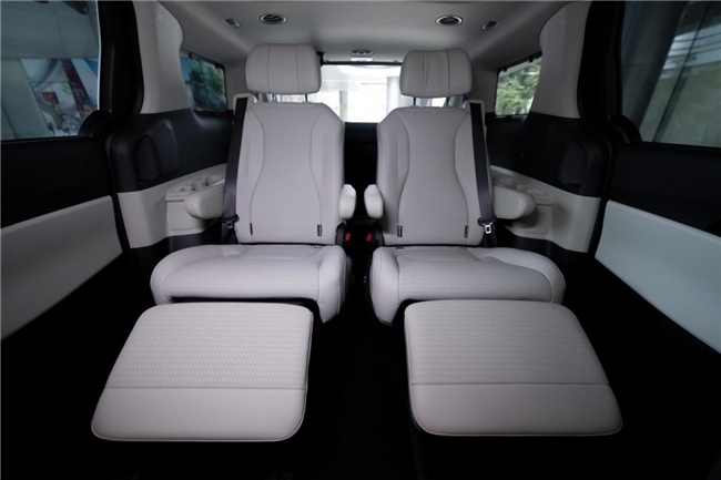 全车座椅采用高级Nappa真皮包覆,驾驶席与第二排座椅配备12向电动调节(含4向腰托)、3档加热/通风功能,第二排航空头枕支持一键舒压模式;二/三排标配隐私玻璃与遮阳帘,搭配B柱防滑扶手、7个USB接口(含第三排2个)、双层中央储物盒等设计,彻底打破传统MPV第三排“临时座位”的局限。
