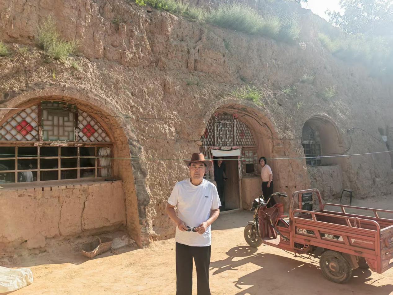 到靖边后已是晚上11时了,我们一行四人住到了当地陕西波浪谷景区附近的栖山别院民宿。老板为我们准备了芸豆炖土豆烩菜和小米粥,当天除了8点的早餐外,到现在已过去15个小时了,也许是大家都饿了,吃的津津有味并夸是近几天最好吃的菜。到靖边第二天也就是8月18日早上,到景区门口为车辆充电时又出现了意外,汽车充电插头拔不出来了,这可把我们急坏了,我和李总借民宿老板的自行车前去协助,最后还是在客服的帮助下才得以解决。虽人在景区门口也没心情进去逛了,就开车回民宿,路上遇到了一户住窑洞的当地居民,我们十分好奇,就上居民家里参观,陕北老乡热情地把我们请进家里,给我们讲窑洞的历史,让我们参观窑洞加拍照,任总还与老乡深入交流了当地的文化特色,最后我们依依不舍地与陕北老乡告别。