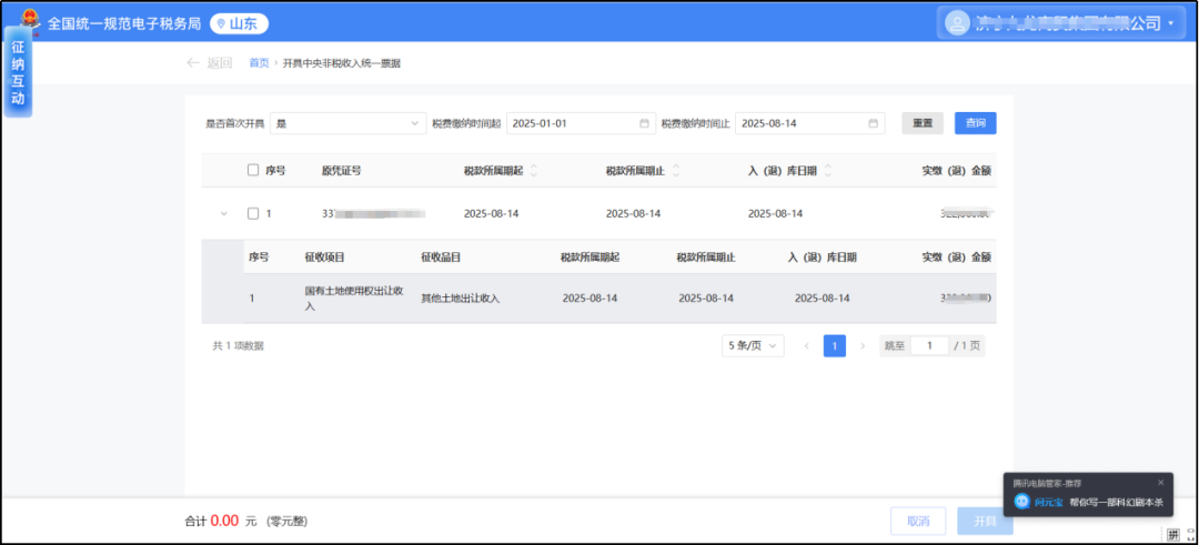 已划转税务部门征收的国有土地使用权出让收入、矿产资源专项收入、海域使用金、无居民海岛使用金、水土保持补偿费、防空地下室易地建设费、可再生能源发展基金等非税收入,请通过“开具中央非税收入统一票据”模块进行查询并打印。