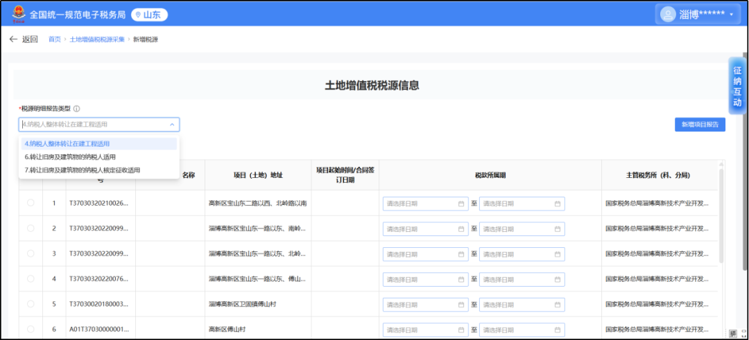 3、我单位申报土地增值税,已经维护好有效的税费种认定信息,通过税源信息采集模块新增税源,下拉列表中没有为从事房地产开发的纳税人预缴适用的项目,怎么办?