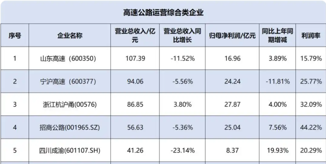 在28家高速公路上市企业中,山东高速以107.39亿元的营收规模位居行业首位,继续领跑行业。宁沪高速(94.06亿)、浙江沪杭甬(86.85亿)分列二三位,显示出公司在行业中的领先地位。