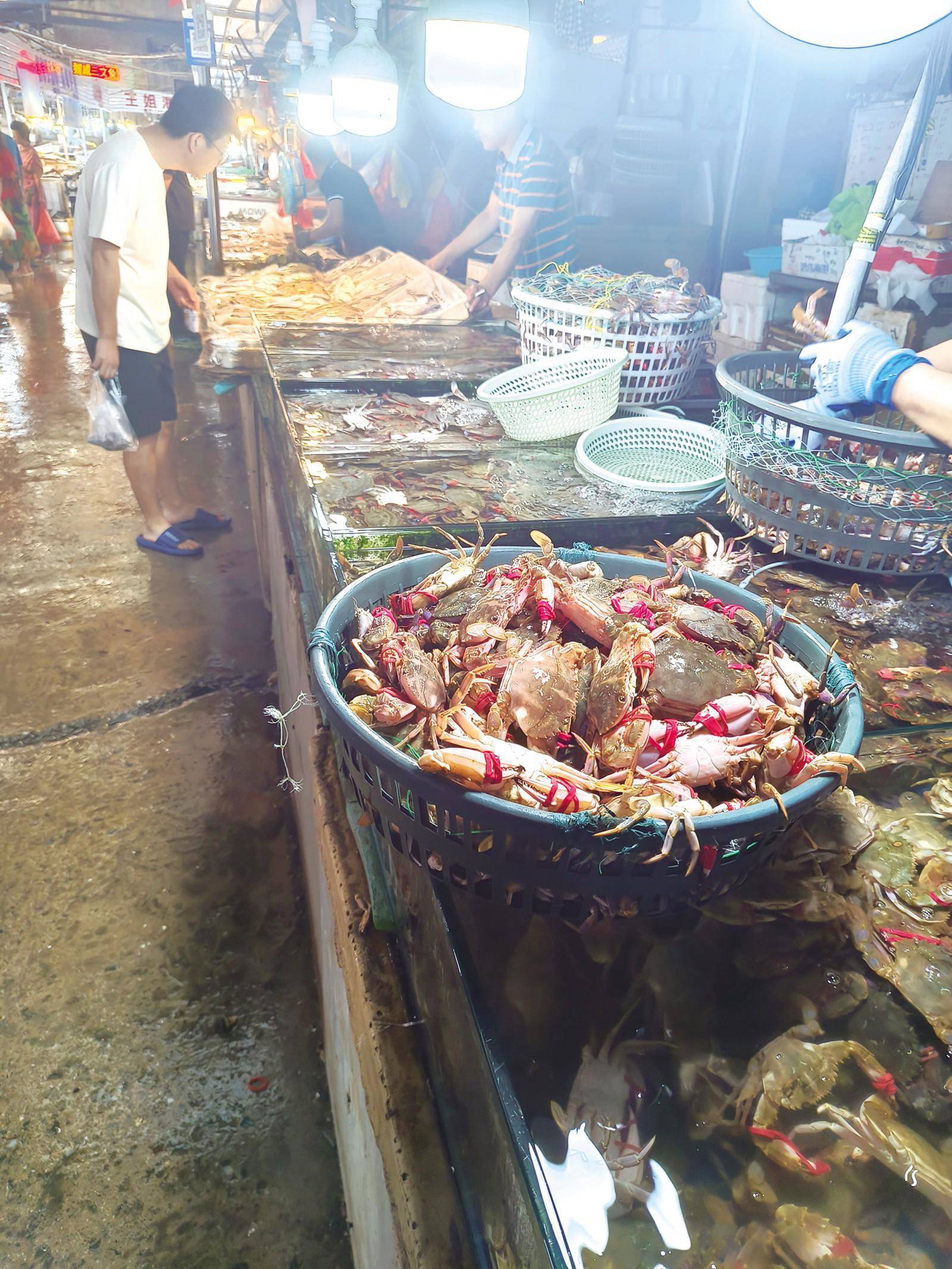 这个季节里的海鲜,不仅是餐桌上的美味,更是亲情的载体。市场里人们摩肩接踵,手里拎着沉甸甸的塑料袋。塑料袋里装满了海鲜,以及他们对一顿丰盛家宴的期待。