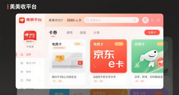 美美收平台的界面设计十分简洁易用,一进入平台,就能感受到它清晰的布局。整个页面没有过多繁杂的元素,分类清晰明了。在首页,各种卡券回收选项被整齐排列,京东e卡回收的入口也十分显眼,用户无需花费过多时间寻找。这种简洁直观的界面设计,使得无论是经常使用网络平台的熟练用户,还是初次接触卡券回收的新手,都能快速上手,顺利完成京东e卡回收的相关操作。