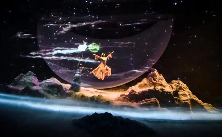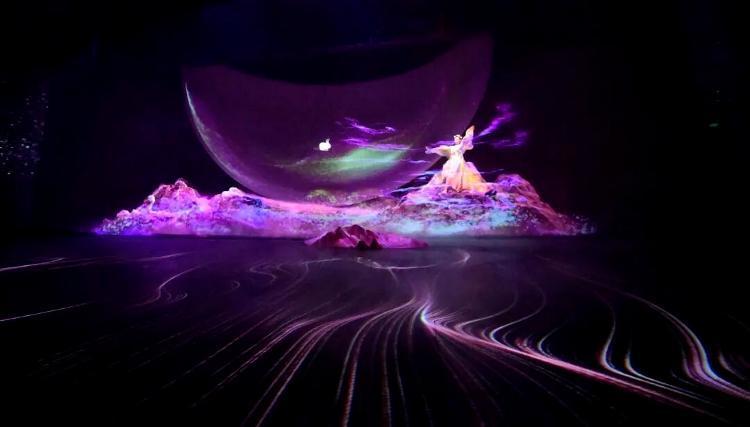 一场演出读懂“月的浪漫”!《故乡的月》在半月形艺术空间里藏满巧思,360°环屏、纱幕与地面投影联手,把“虚实交融”的月夜搬进现实。