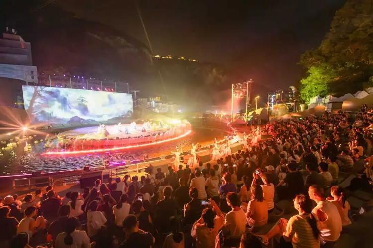 演出打破传统舞台限制,歌舞在岸边起、光影在水面铺,装置艺术和水特效轮番上演,真正实现“人在船中坐,船在画中游”。