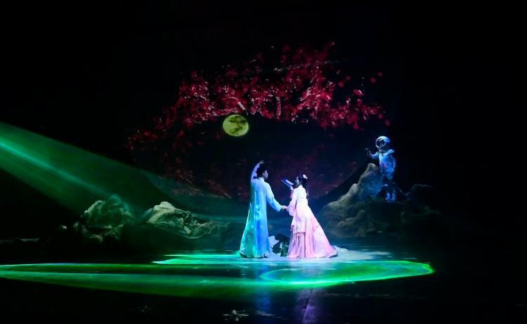 演出分为“月光、月色、月思、月望”四个篇章,从古至今多维度诠释“月”的文化意象,融合戏剧、科技与艺术体验,为观众提供多感官沉浸之旅。
